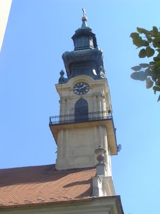 Den katolska kyrkan. Galleriet på kyrktornet känner jag igen från Spiš-regionen i Slovakien.