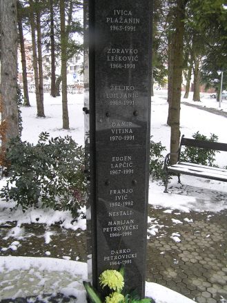 På Svačićeva-gatan fanns ett minnesmärke över tre polismän - tillhörande stadens polisstation och av vilka en var tjeck - som den 20 juli 1991 sköts till döds av serber när de patrullerade i staden.
