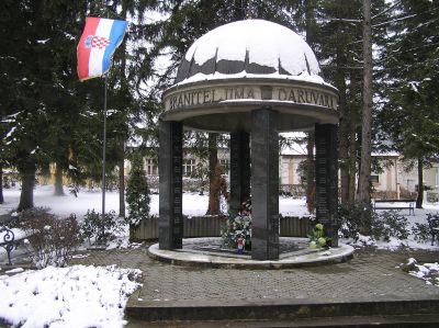 "Åt Daruvars försvarare" står det på ett monument i Daruvar. På pelarna kan man läsa namnen, med födelse- och dödsår, på fallna eller försvunna. Födelseåren skiljer sig åt – någon var född 1973, flera på 60-talet och någon 1952 – medan dödsåren alltid är 1991 eller 1992. Efter den kroatiska självständighetsförklaringen i juni 1991 anfölls Kroatien av Jugoslaviska folkarmén (JNA) som vid det laget uteslutande bestod av serber. Fram till januari 1992, då en vapenvila inleddes, rasade strider mellan JNA och serbiska frikårer å ena sidan och kroatiska styrkor å den andra. Även i Daruvar förekom strider. Staden utsattes för serbisk granatbeskjutning från byar i närheten (Batinjani, Vrbovac och Pakrani). Staden besköts även av artilleri, flygbomber och raketer.