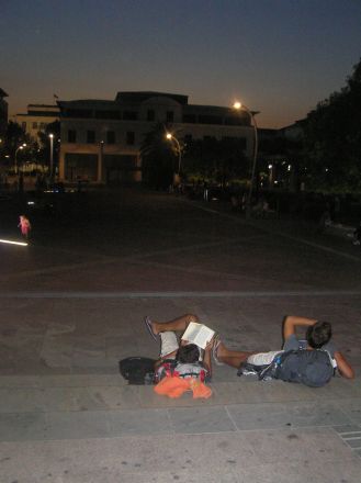 Det fanns plats för mig i härbärget, en säng i en liten sal med rum för kanske tio gäster. Jag ställde ifrån mig mitt bagage på rummet och dröjde kvar en stund i det lilla köket där ett par gäster talade franska. Jag trivdes som fisken i vattnet. Den unge mannen som arbetade på vandrarhemmet bjöd mig att slå mig ner i soffan utomhus och frågade om jag ville ha ett glas vin. Någon berättade att det skulle spelas en match på stadion den här kvällen: ett montenegrinskt lag mot ett lettiskt. Det fanns en biljett om jag var intresserad. Jag tackade dock nej – min håg står inte till fotboll, allra minst en kväll som denna.